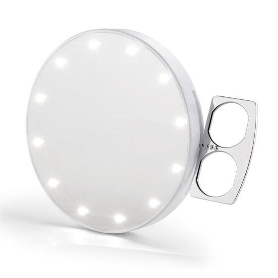 RIKI SKINNY - SUPER FINE 5x - LED Makeup Spiegel mit Tragehalterung - Selfie Funktion Weiß