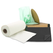 Die Arbeitsplatzabdeckungen sind aus Papier/PE - beschichtet und in verschiedenen Farben erhältlich.