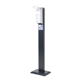 This innovative multifunctional station with folded towel dispenser stows paper towels ideally - always and everywhere! In addition, the hygiene station impresses with an integrated washing paste and garbage bag holder. Here, no wall mounting is required, because the towel dispenser is supported by a steel column and can thus be placed as desired and moved at any time. The towel dispenser can be mounted easily and quickly, without the use of dowels.
